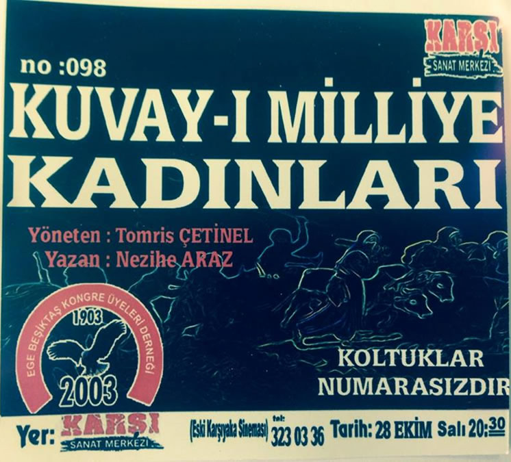 28 EKİM 2014- TİYATRO ETKİNLİĞİ “ KUVAY-I MİLLİYE KADINLARI ”28 Ekim 2014 tarihinde karşı sanat merkezinde Kuvay-ı Milliye Kadınları adlı oyunu dernekçe izledik.